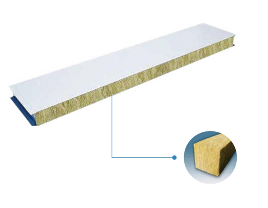 構(gòu)成 :采用中高密度巖棉為芯材,彩涂板為面層 (兩層 )及高強(qiáng)度粘劑,通過(guò)高速連續(xù)自動(dòng)化成型機(jī)